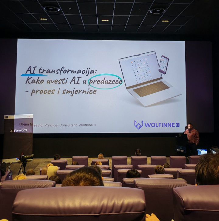Forward konferencija u Banjoj Luci (decembar 2025) bila je posvećena temi „AI alati u službi razvoja poslovanja malih i srednjih preduzeća“. Ispred Wolfinne IT, konferenciji je prisustvovao naš direktor Bojan Nišević, sa fokusom na AI transformaciju u preduzeću — kako uvesti AI kroz jasan proces i sa mjerljivim rezultatima.